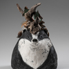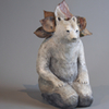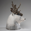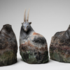 Pour donner vie à ce qui naît de mes mains, je prépare à l’avance de petits éléments (yeux, bois, cornes, plumes) en grès ou porcelaine, que je cuis à haute température.